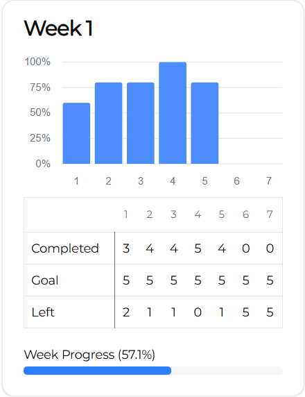 See your momentum at a glance. Smart weekly summaries highlight streaks and trends so you know exactly how you’re doing—and what to improve next.